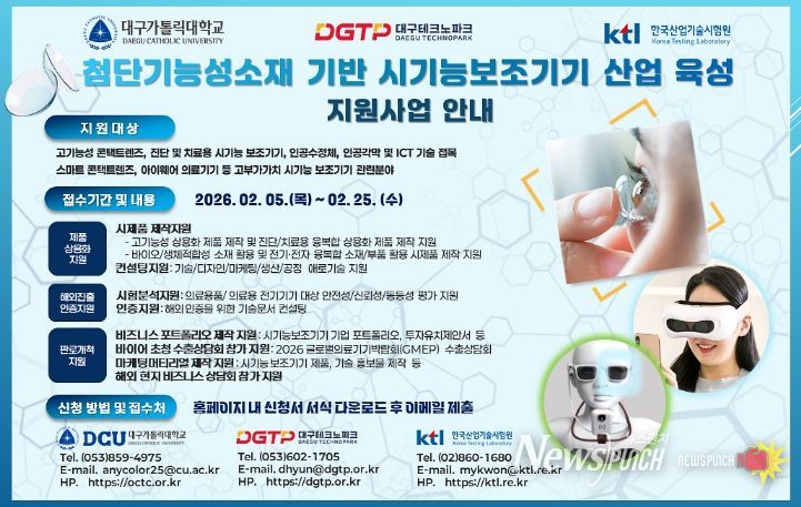 뉴스펀치 조평훈 기자 | 대구광역시는 산업통상부, 경상북도와 함께 ‘2026년 첨단 기능성 소재 기반 시(視)기능 보조기기 육성사업’을 본격 추진하고, 참여기업을 모집한다.