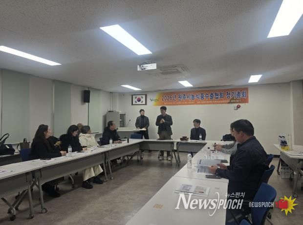 뉴스펀치 조평훈 기자 | 원주시 농식품 수출협회는 지난 3일 농업기술센터 세미나실에서 ‘2026년도 정기총회’를 개최하고, 올해 원주시 농식품 수출 확대를 위한 핵심 추진 과제를 논의했다.