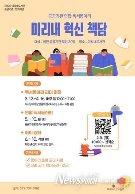 참여 신청은 2월 9일 오전 10시부터 운영 안내문의 큐알(QR)코드를 통해 선착순으로 접수한다. 자세한 사항은 미리내도서관 장서관리팀으로 문의하면 된다.