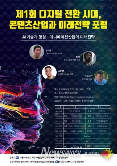 뉴스펀치 박상훈 기자 | 제28회 부천국제애니메이션페스티벌은 가톨릭대학교 RISE사업단 CUK-GAIA디지털전환센터가 주최하고, BIAF와 CUK-GAIA디지털전환센터가 공동 주관하는 『디지털전환시대, 콘텐츠산업과 미래전략』 포럼을 오는 2월 11일 개최한다.
