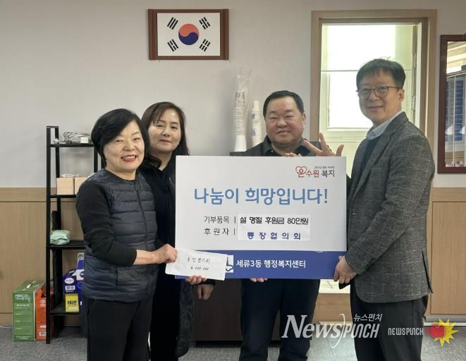 뉴스펀치 박상훈 기자 | 세류3동 행정복지센터는 지난 2월 2일, 세류3동 통장협의회가 지역 내 어려운 이웃을 위해 이웃 돕기 성금 80만 원을 기부하고, 통장협의회 회장이 개인 성금 20만 원을 추가로 기탁해 총 100만 원의 성금이 전달됐다고 밝혔다.