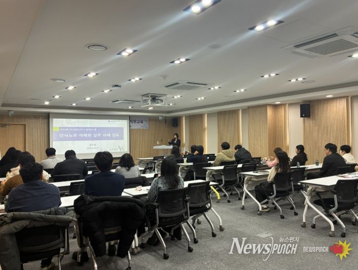 교육은 노무법인 봄날의 권민정 노무사로부터 ▲공공부문 노무관리 주요 이슈와 경향 ▲채용부터 퇴직까지의 노동법상 실무 쟁점과 대응 방향 ▲공정 채용 관리 및 근로 시간, 임금, 휴가 등 근로기준법 전반에 대한 이해를 높이는 과정으로 진행됐다.