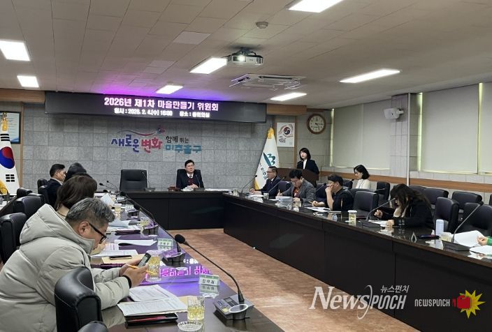 뉴스펀치 정홍균 기자 | 인천 미추홀구는 지난 4일 구청 중회의실에서 ‘2026년 제1차 마을만들기 위원회’를 열고 주민 주도의 마을공동체 활성화 방안을 논의했다.
