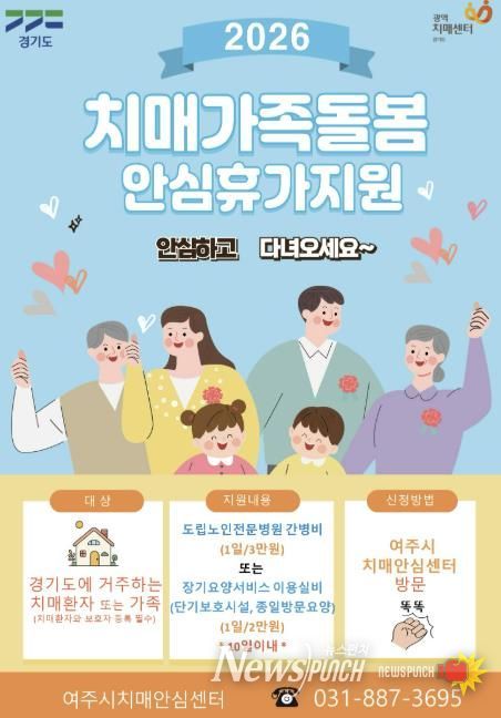 뉴스펀치 박상훈 기자 | 여주시치매안심센터는 2026년에도 치매환자를 돌보는 가족이 잠시나마 돌봄에서 벗어나 휴식을 취할 수 있도록『치매가족돌봄 안심휴가제』를 지속적으로 운영한다.