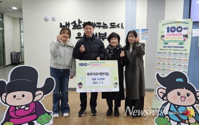 뉴스펀치 박상훈 기자 | 의정부시 송산3동행정복지센터은 2월 4일 민락동에 위치한 푸르지오어린이집이 지역 내 이웃돕기를 위한 성금 63만 원을 기탁했다고 밝혔다.