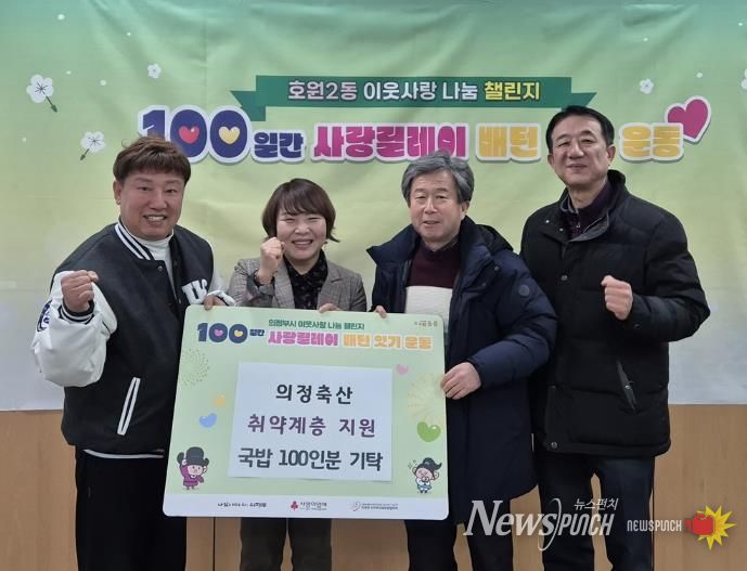 뉴스펀치 박상훈 기자 | 의정부시 호원2동주민센터는 2월 3일 의정축산이 설 명절을 맞아 어려운 이웃들을 위해 한우국밥 100인분을 기탁했다고 밝혔다.