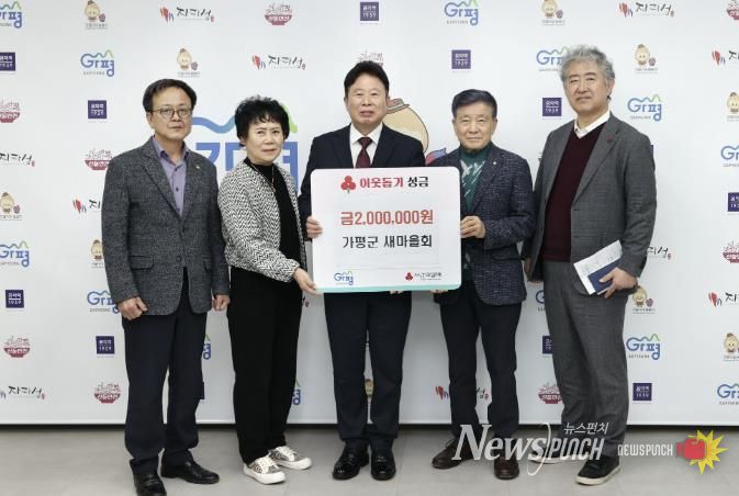 뉴스펀치 박상훈 기자 | 가평군새마을회는 4일 가평군청을 방문해 불우이웃돕기 성금 200만 원을 기탁했다.