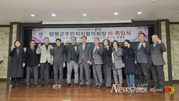 뉴스펀치 박상훈 기자 | 양평군 주민자치 발전을 이끌어 온 제13대와 새롭게 출범하는 제14대 주민자치협의회장 이·취임식이 지난 4일 양평군 평생학습센터에서 개최됐다.