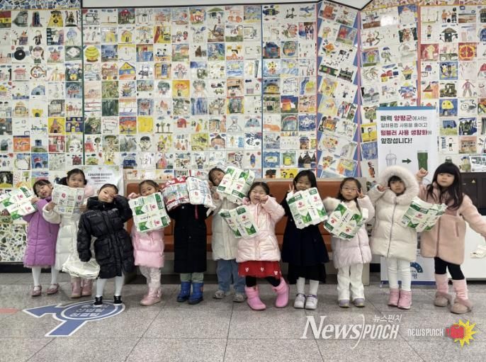 뉴스펀치 박상훈 기자 | 양평군 양평읍은 지난 4일 오전 10시, 양평읍 소재 동산유치원 원생들이 직접 모은 우유팩 약 4kg과 폐건전지 약 5kg을 양평읍사무소에 전달하며 자원순환의 중요성을 배우는 뜻깊은 시간을 가졌다고 밝혔다.