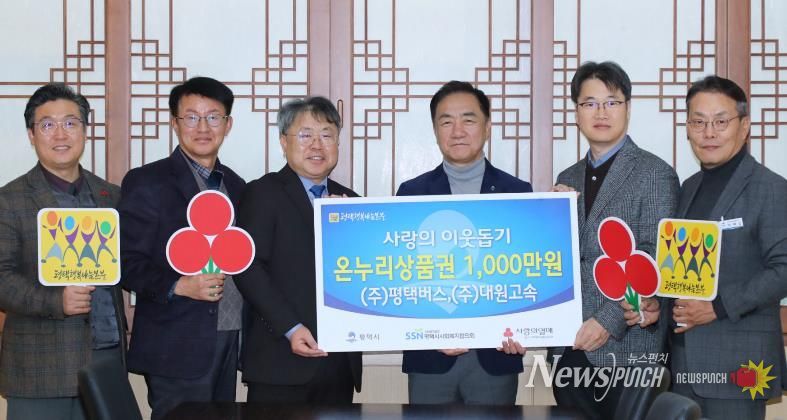 뉴스펀치 박상훈 기자 | ㈜평택버스는 지난 2일 관내 취약계층이 풍족한 설 명절을 보낼 수 있도록 온누리상품권 1천만 원을 평택시청 대외협력실에서 평택행복나눔본부로 전달했다.