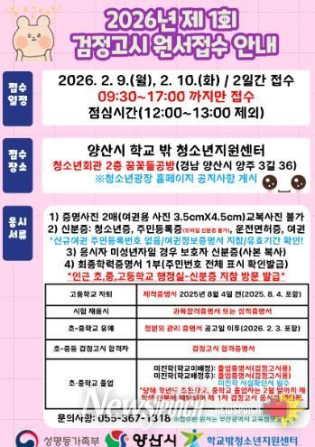 뉴스펀치 박세훈 기자 | 양산시 학교 밖 청소년지원센터는 학교 밖 청소년들의 2026년 제1회 검정고시 응시를 지원하기 위해 대리 원서접수처를 운영한다.