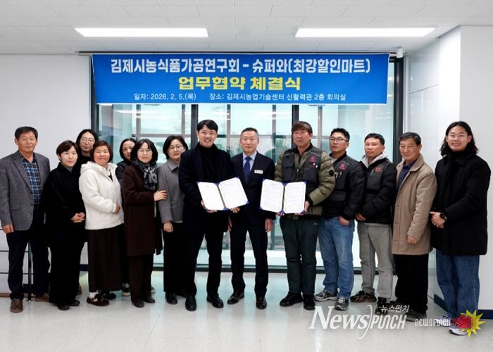 뉴스펀치 정홍균 기자 | 김제시는 5일 지역 농식품 가공산업의 경쟁력 강화를 위해 김제시 농식품 가공연구회와 슈퍼와(최강할인마트 포함)가 업무협약을 체결했다고 밝혔다.