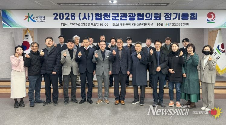 뉴스펀치 박세훈 기자 | (사)합천군관광협의회(회장 김해식)는 5일 합천군청 3층 대회의실에서 김해식 회장, 박민좌 경제문화국장, 조홍남 관광진흥과장, 협의회 회원 등 30여명이 참석한 가운데 2026년 정기총회를 개최했다.