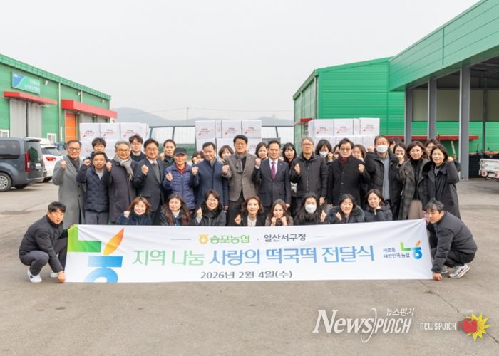 뉴스펀치 박상훈 기자 | 고양특례시 일산서구는 지난 4일 송포농협과 설 명절맞이 ‘사랑의 떡국떡’ 전달식을 열고, 떡(4kg) 500박스를 전달받았다고 5일 밝혔다.