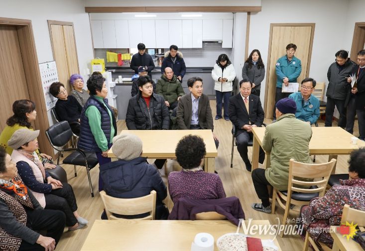 뉴스펀치 조평훈 기자 | 김진태 강원특별자치도지사는 2월 5일 화천 사창2리 경로당 한파쉼터를 방문해 어르신들의 이용 상황을 살피고, 겨울철 취약계층 보호를 위한 현장 점검에 나섰다.