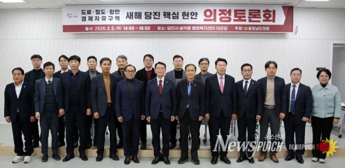 뉴스펀치 이현승 기자 | 충남도의회는 5일 당진시 송악읍 행정복지센터 대강당에서 ‘도로·철도·항만·경제자유구역, 새해 당진 핵심 현안’을 주제로 의정토론회를 열고, 당진 지역 대형 SOC 및 산업 인프라 사업의 추진 현황과 대응 방안을 종합적으로 논의했다.
