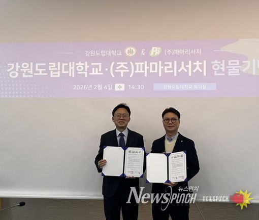 뉴스펀치 조평훈 기자 | 강원도립대학교와 재생의학 기반 바이오 제약 기업인 ㈜파마리서치(대표이사 손지훈)가 지역 혁신 성장을 주도할 전문 인재 양성을 위해 손을 잡았다.