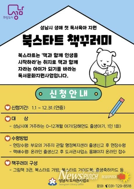 뉴스펀치 박상훈 기자 | 성남시는 올해 출생아 가정을 대상으로 ‘북스타트(Book Start) 책 꾸러미 지원사업’을 시행한다고 6일 밝혔다.
