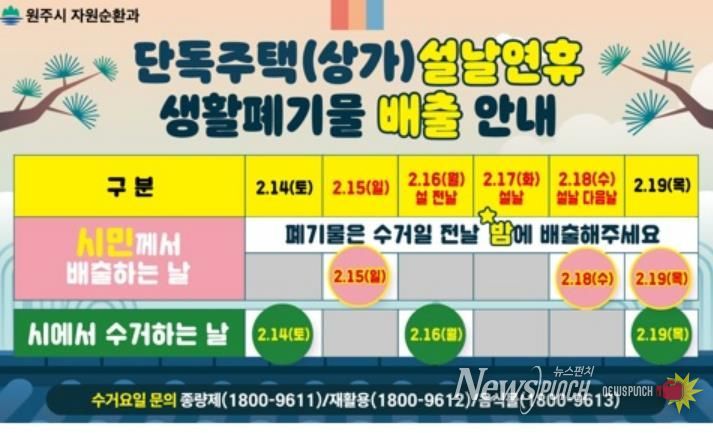 뉴스펀치 조평훈 기자 | 원주시는 설 연휴 동안 생활폐기물로 인한 시민 불편을 최소화하고 쾌적한 명절 분위기를 조성하기 위해 ‘설 연휴 생활폐기물 관리 대책’을 선제적으로 추진한다.