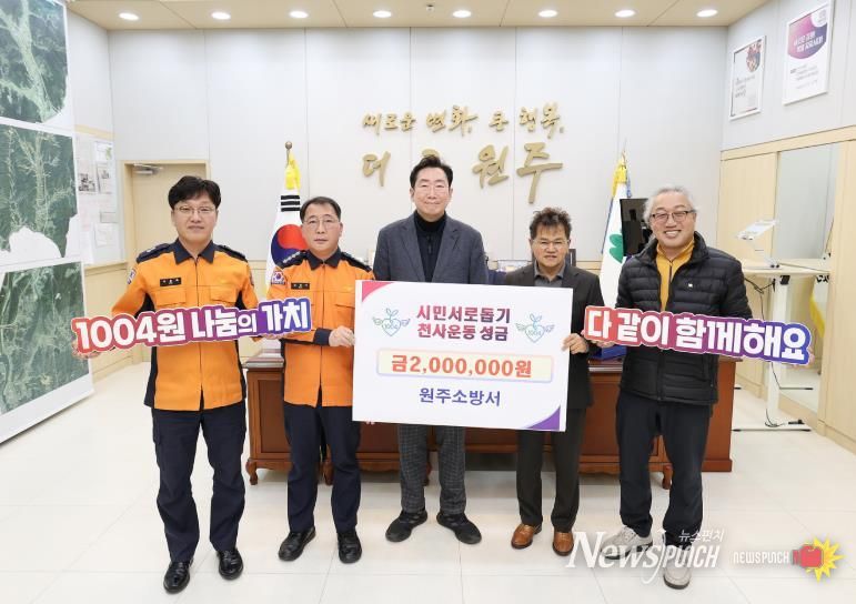 뉴스펀치 조평훈 기자 | 원주소방서는 지난 5일 원주시청을 방문해 시민서로돕기 천사운동 후원금 200만 원을 전달했다.