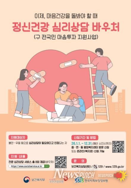 뉴스펀치 조평훈 기자 | 원주시는 우울·불안 등 정서적 어려움이 있는 시민들이 심리 상담 서비스를 받을 수 있도록 ‘2026년 정신건강 심리상담 바우처사업’ 이용자를 모집한다.