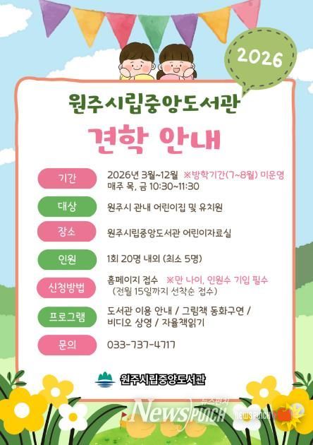 뉴스펀치 조평훈 기자 | 원주시립중앙도서관은 오는 3월부터 12월까지 관내 유치원과 어린이집을 대상으로 도서관 견학 프로그램을 운영한다.