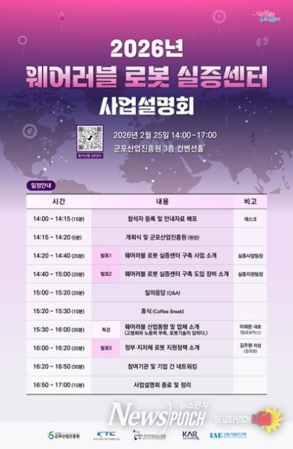 설명회 참석을 희망하는 기업 및 관계자는 행사 포스터 내 QR코드를 스캔하여 간편하게 사전 등록할 수 있으며 자세한 내용은 군포산업진흥원 홈페이지를 통해 확인할 수 있다.