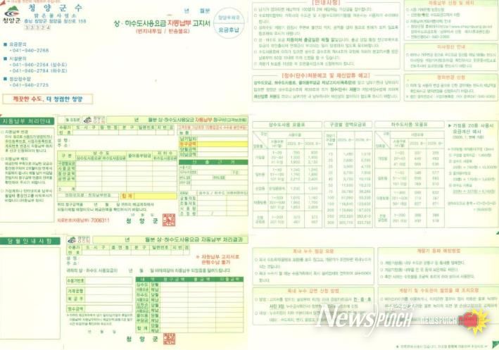 뉴스펀치 이현승 기자 | 청양군이 군민의 소중한 개인정보를 보호하고 고지서 가독성을 높이기 위해 상·하수도 요금 고지서를 기존 지로형에서 ‘봉합형’으로 전면 개편한다.