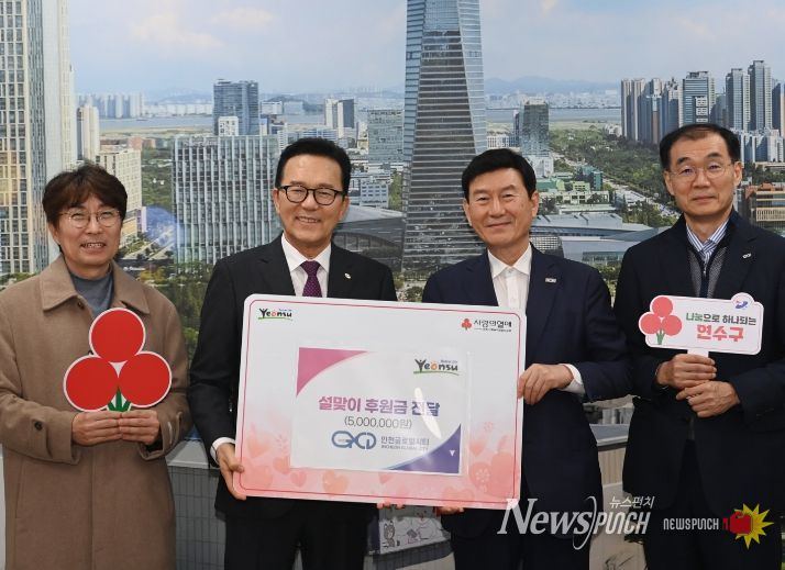 뉴스펀치 정홍균 기자 | 연수구는 지난 5일 ㈜인천글로벌시티(대표 정근영)로부터 지역 내 취약계층을 위한 이웃돕기 성금 500만 원을 전달받았다.