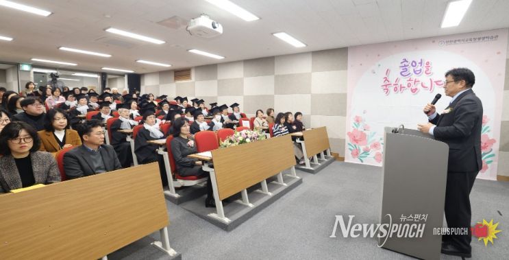뉴스펀치 정홍균 기자 | 인천광역시교육청평생학습관은 5일 도성훈 인천광역시교육감과 지도교사 및 가족이 참석한 가운데 초등·중학 학력인정 문해교육 졸업식을 진행했다.