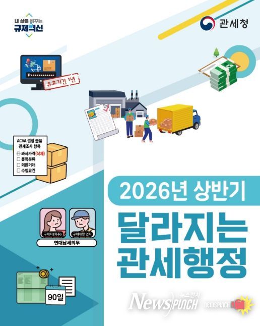 뉴스펀치 정홍균 기자 | 관세청은 올해부터 달라지는 관세행정 주요 제도를 국민들이 손쉽게 볼 수 있도록 '2026년 달라지는 관세행정'을 관세청 누리집에 공개했다.