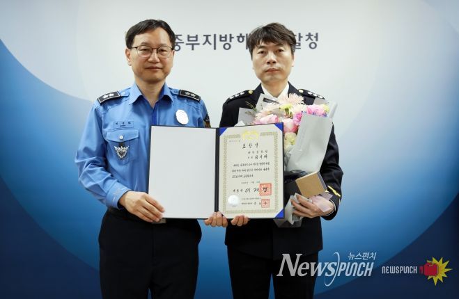 뉴스펀치 정홍균 기자 | 중부지방해양경찰청은 오늘 오전 중부해경청 13층 대회의실에서 ‘아시아태평양경제협력체(APEC) 정상회의 개최 유공 정부포상 수여식’을 개최했다.