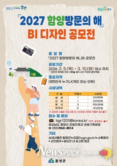 공모 주제는 '2027 함양 방문의 해'를 상징하는 브랜드 이미지(BI) 디자인이며, 대한민국 국민이라면 누구나 개인 또는 단체 자격으로 참여할 수 있다. 접수 기간은 2월 5일부터 3월 10일까지다.