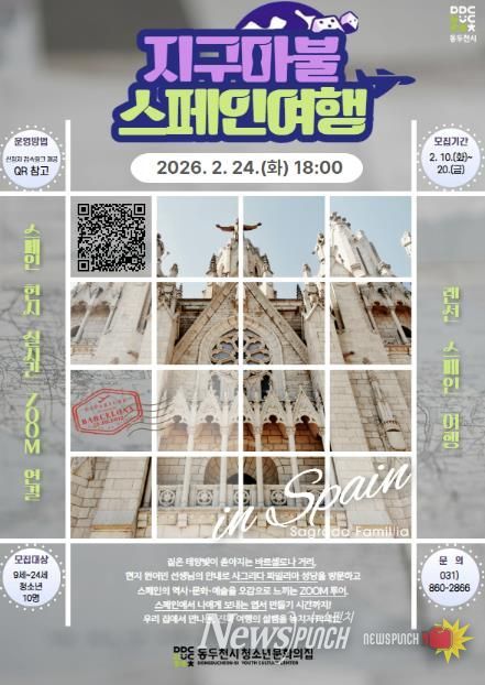 뉴스펀치 박상훈 기자 | 동두천시 청소년문화의집은 관내 청소년을 대상으로 한 2026년 특별프로그램 '지구마불 스페인여행' 참가자를 모집한다.