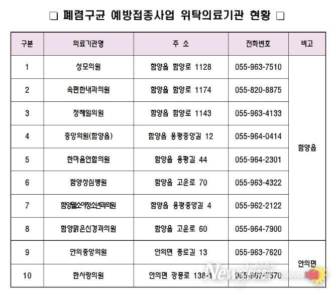뉴스펀치 박세훈 기자 | 함양군은 65세 이상 어르신(올해 기준 1961년 12월 31일 이전 출생자)을 대상으로 폐렴구균 무료 예방접종을 연중 실시하고 있다고 밝혔다.