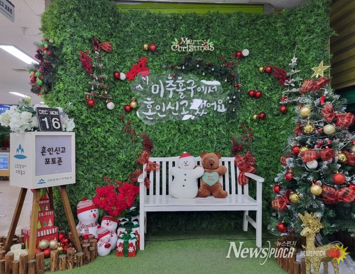 구청 민원실 내에 마련된 ‘혼인신고 기념 포토존’은 계절별로 테마를 달리해 새롭게 단장하며, 신혼부부들에게 즉석 사진 촬영과 미니 액자를 제공하며 인생의 새출발을 축하한다.