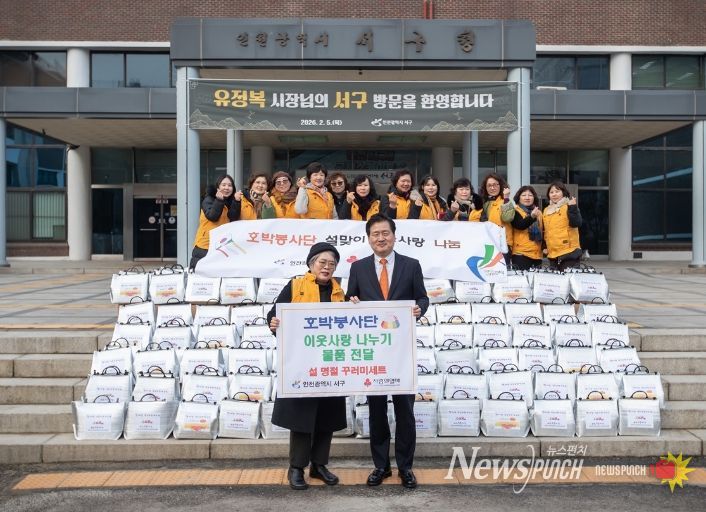뉴스펀치 정홍균 기자 | 인천광역시 서구는 지난 5일 호박봉사단(단장 최정옥)으로부터 설명절 먹거리 꾸러미 150박스를 전달받았다.