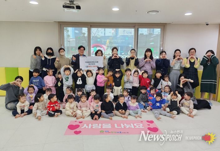 뉴스펀치 정홍균 기자 | 국공립아라한신더휴어린이집)은 바자회, 개원 기념 행사, 자선냄비 등 다양한 행사를 통해 모아진 수익금 전액 약 90만 원을 인천서구복지재단에 기부했다.