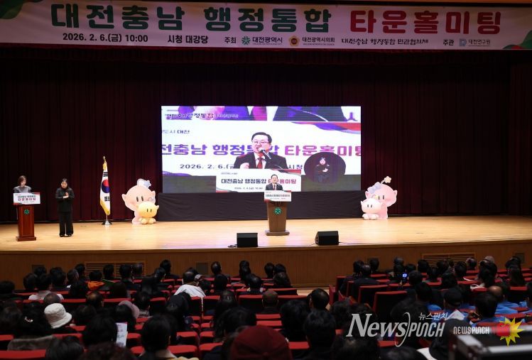뉴스펀치 이현승 기자 | 대전시는 6일 오전 10시 대전시청 3층 대강당에서 ‘대전․충남 행정통합 타운홀미팅’을 개최하고, 행정통합 특별법안을 둘러싼 주요 내용과 쟁점에 대해 시민들과 직접 소통하는 시간을 가졌다.