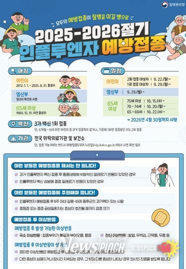 이재홍 대구광역시 보건복지국장은 “설 명절은 온 가족이 함께 모이는 시기인 만큼, 건강하고 안전하게 보내기 위해서는 예방접종이 필수적”이라며 “아직 접종하지 않은 시민들께서는 연휴 전 가까운 의료기관을 방문해 독감 예방접종을 완료해 주시길 바란다”고 당부했다.