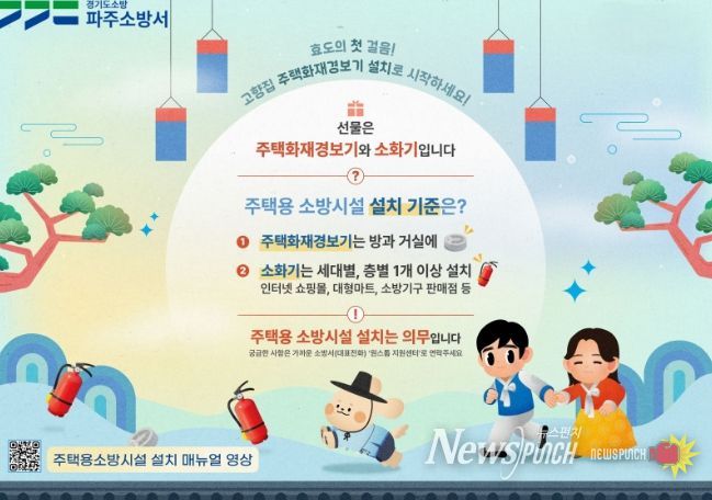 김명찬 파주소방서장은 “화재는 초기 몇 분이 가장 중요하다”며 “각 가정과 영업장에서는 소화기를 눈에 잘 띄는 곳에 비치하고, 평소 사용 방법을 익혀 두길 바란다”고 말했다.
