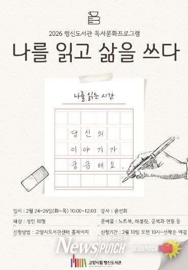 뉴스펀치 박상훈 기자 | 고양특례시 행신도서관은 일반 성인을 대상으로 하는 글쓰기 프로그램 ‘나를 읽고 삶을 쓰다’를 운영한다.