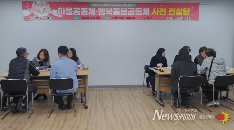 뉴스펀치 김용희 기자 | 고흥군은 6일 고흥문화회관 세미나실에서 2026년 마을공동체 공모사업에 선정된 공동체를 대상으로 사업의 방향성과 실행력을 높이기 위한 사전 컨설팅을 실시했다고 밝혔다.