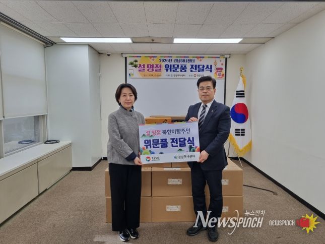 뉴스펀치 박세훈 기자 | 경상남도는 6일, 설 명절을 맞아 도내 북한이탈주민들에게 위문품(식료품 선물세트 75개)을 전달했다.