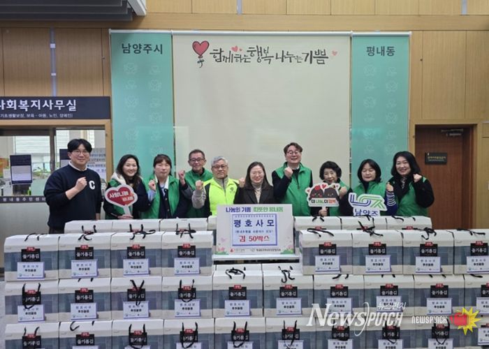 뉴스펀치 박상훈 기자 | 남양주시는 지난 5일 평내호평을 사랑하는 모임이 설 명절을 맞아 김 선물세트 50박스를 평내동 지역사회보장협의체에 기탁했다고 6일 밝혔다.