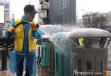 서울 중구, '아미(ARMY)' 맞이 한창…명동 거리엔 환영 영상, 물청소도 '박박'