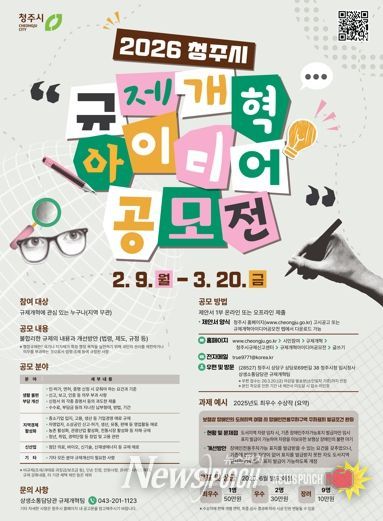 뉴스펀치 이현승 기자 | 청주시는 시민이 체감할 수 있는 다양하고 창의적인 규제개혁 아이디어를 발굴해 일상생활과 경제활동을 제약하는 규제를 적극 개선하고자 ‘2026 청주시 규제개혁 아이디어 공모전’을 개최한다고 8일 밝혔다.