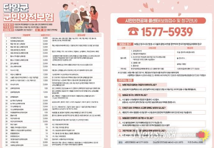 뉴스펀치 이현승 기자 | 단양군이 군민의 일상생활 속 각종 사고와 재난으로 인한 피해 부담을 덜기 위해 2026년도 군민안전보험을 갱신 가입하고 보장 내용을 대폭 확대했다.