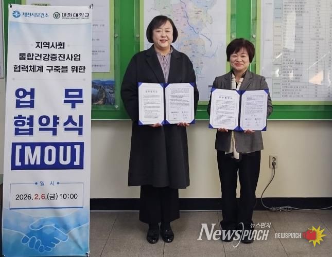뉴스펀치 이현승 기자 | 제천시보건소는 지난 6일 대원대학교와 ‘지역사회 통합건강증진사업 협력체계 구축’을 위한 업무협약(MOU)을 체결했다. 이날 협약식에는 제천시보건소장과 대원대학교 학과장이 참석했다.