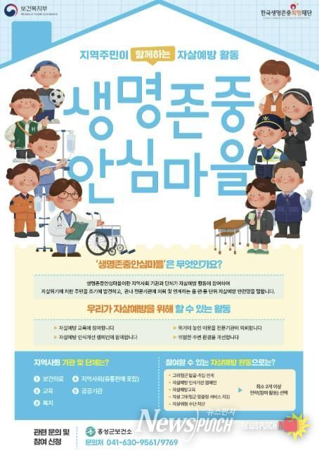 뉴스펀치 이현승 기자 | 홍성군은 지역사회의 참여를 바탕으로 한 자살예방 안전망 구축을 위해 ‘2026년 함께 만드는 생명존중안심마을’ 운영에 참여할 기관·단체를 모집한다고 밝혔다.